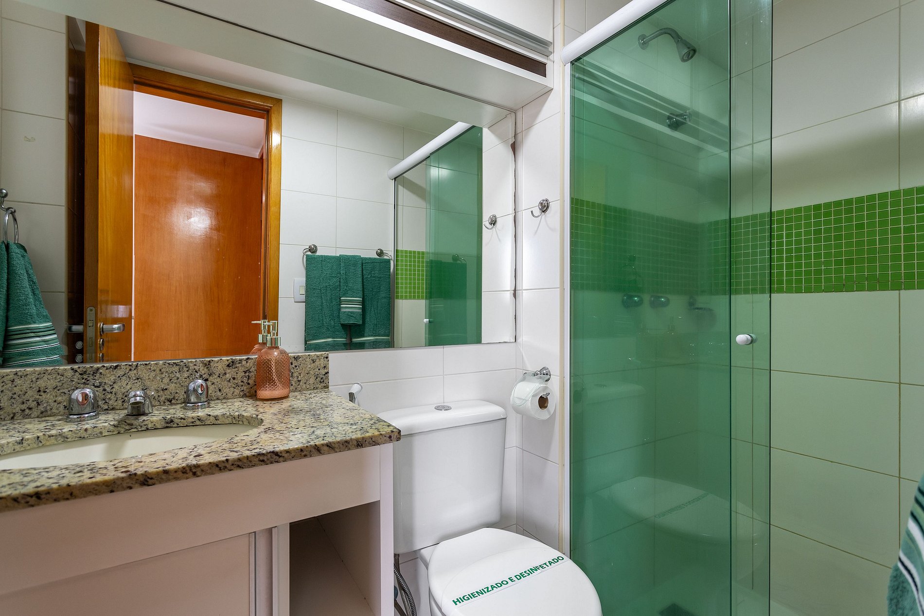 Fornecemos um (1) rolo de papel higiênico e um sabonete (1) por banheiro, não fazemos reposição;