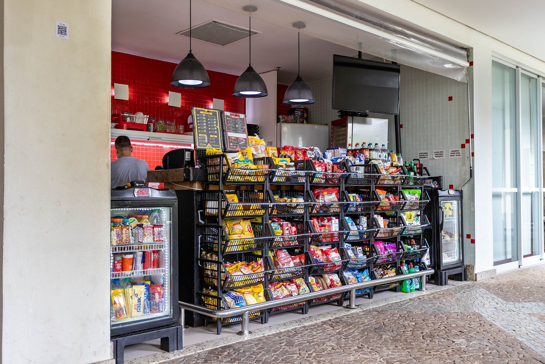 Temos um mini shopping com supermercado, padaria, pizzaria, farmácia e alguns restaurantes a 10 metros do apartamento (em frente ao Condomínio)