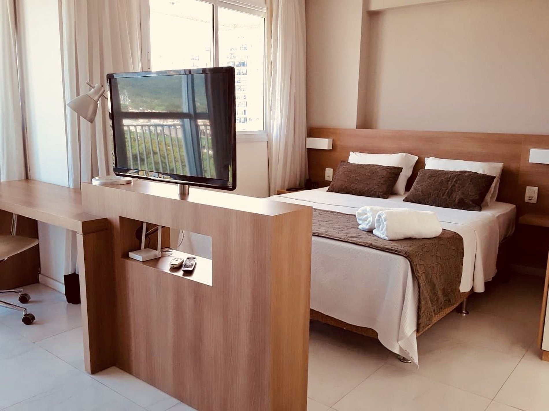 Flat TOP e PERFEITO inteiro na Barra da Tijuca com cozinha, lavanderia, GARAGEM e wi fi