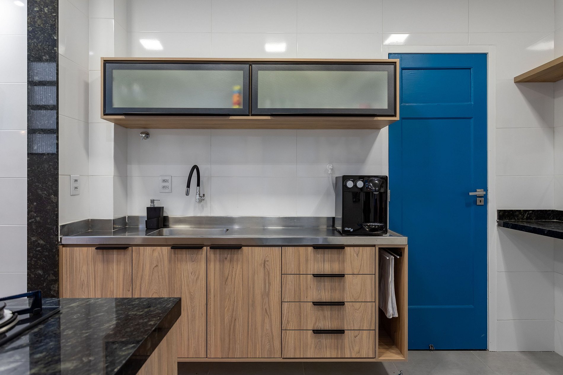 Cozinha completa com eletrodomésticos, microondas, coocktop, geladeira, sanduicheira, cafeteira , utensílios de cozinha. Não oferecemos forno.