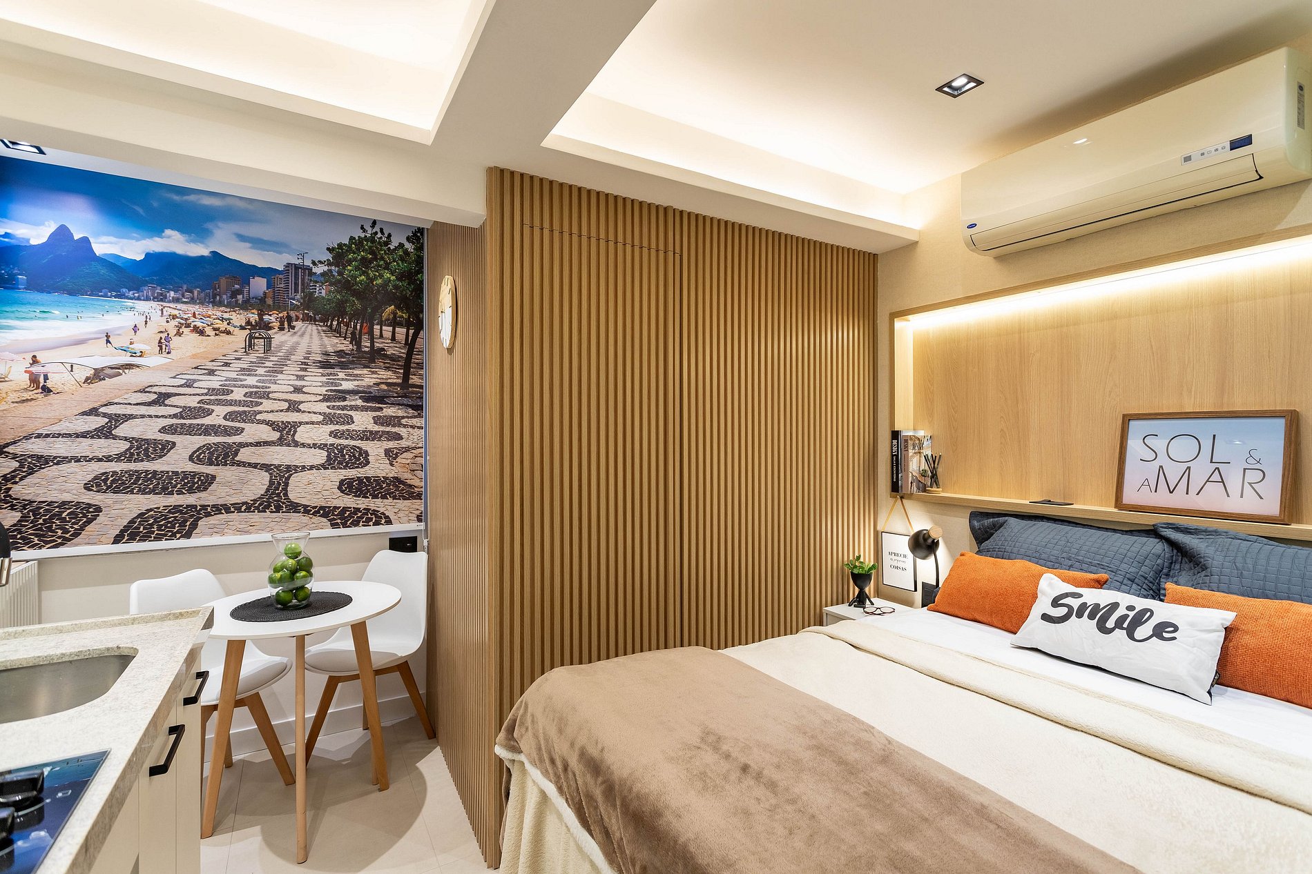 Todo o estúdio foi projetado com marcenaria de alta qualidade, cada canto foi pensado no bem estar e conforto do hóspede, que poderá desfrutar de uma experiência inesquecível em Ipanema .