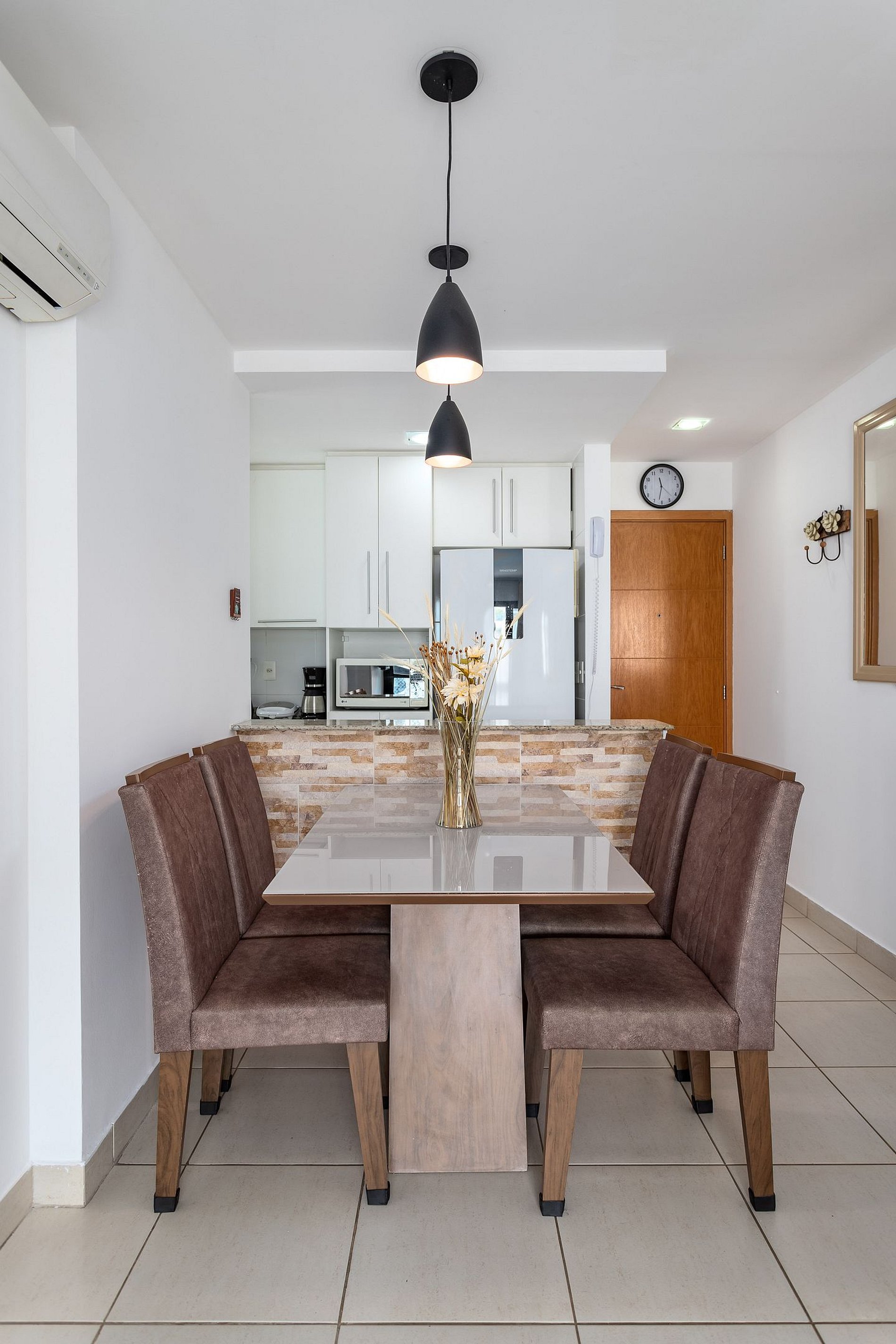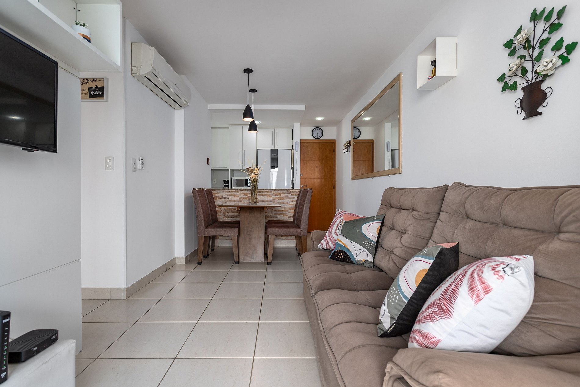 Sala: Sofá confortável, com sofá cama, mesa de jantar para 4 pessoas, TV SMART (Plano de canais intermediário) e WiFi. Não oferecemos ar na sala, somente nos quartos.
