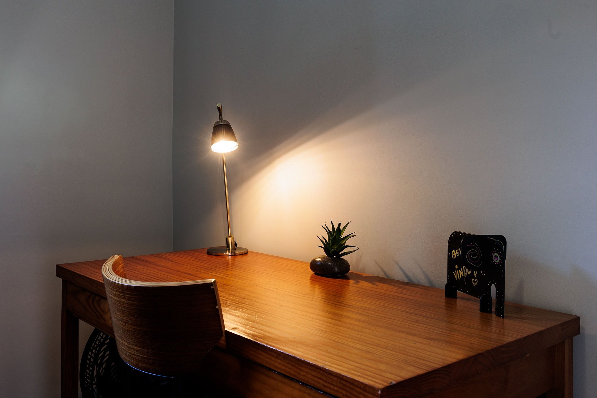 - Primeiro quarto com cama de casal padrão confortável, com armário e mesa adequada para home office, ar condicionado e ventilador de teto, black out nas janelas.