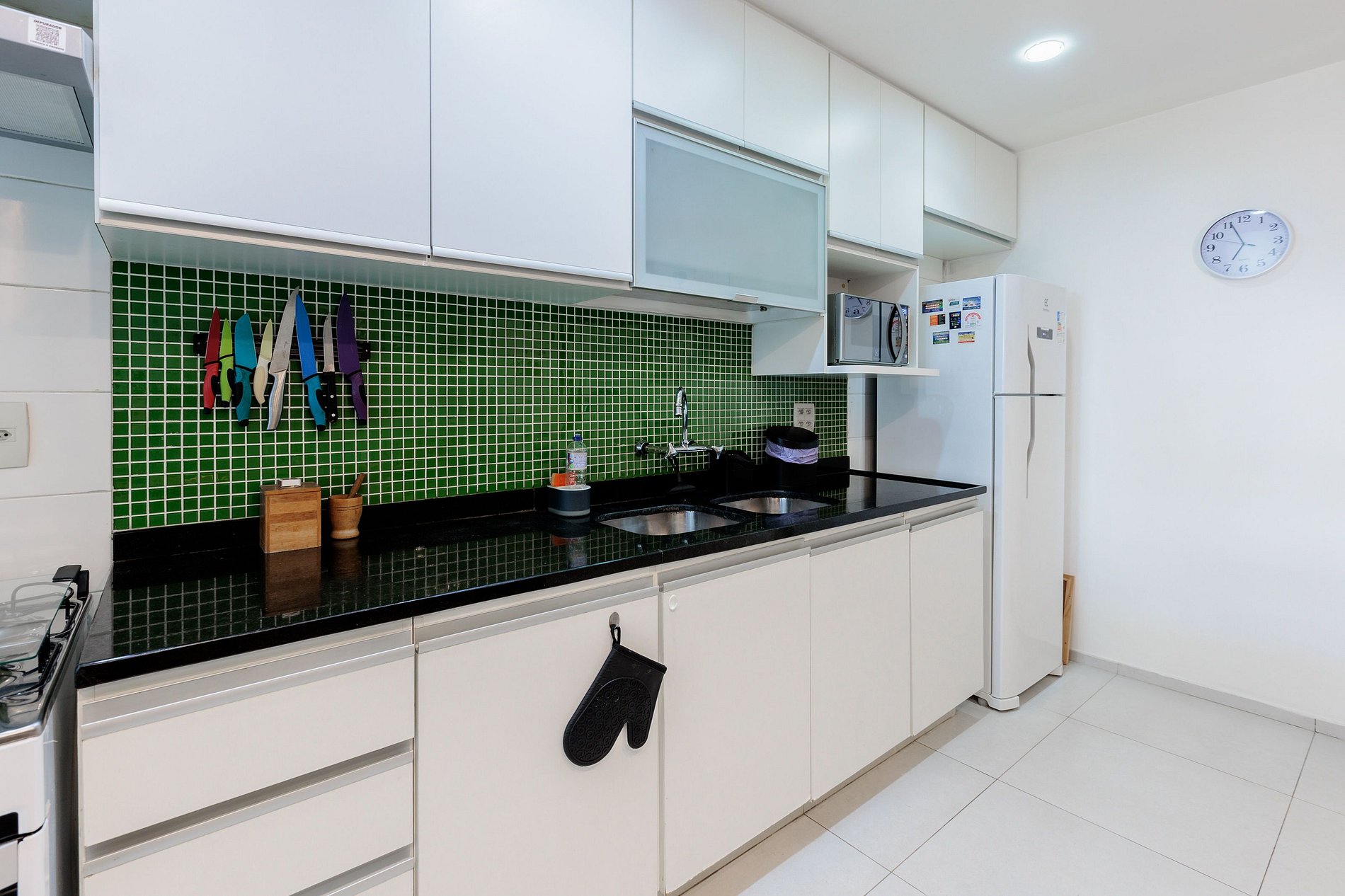 Possui quartos aconchegantes, cozinha totalmente equipada para atividades culinárias, integrada à sala de estar e jantar, banheiros modernos, ar nos quartos para o seu conforto e Wi-Fi.