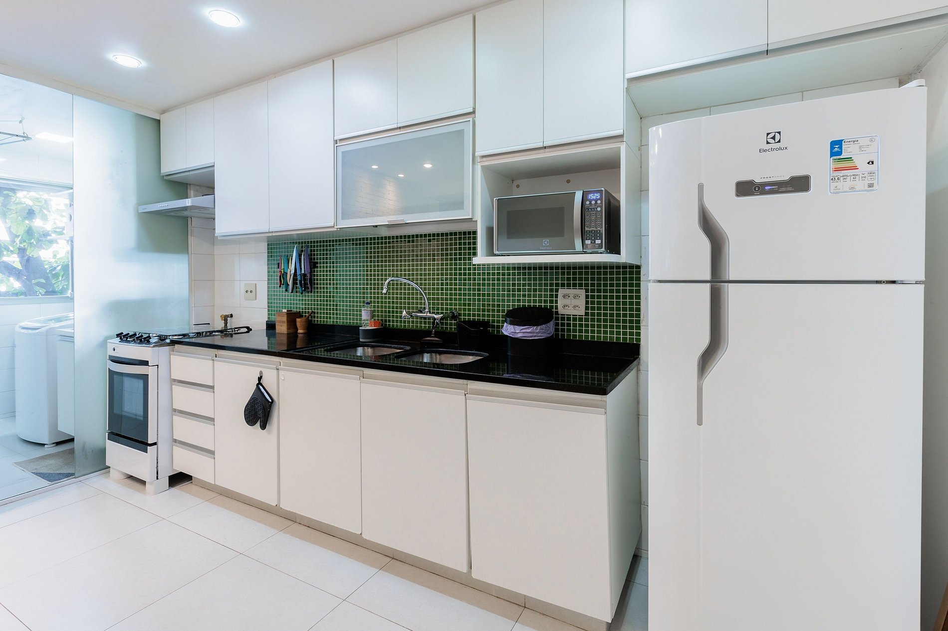 - Cozinha totalmente equipada com utensílios, eletrodomésticos, louças, panelas, talheres, cafeteira, sanduicheira, etc.