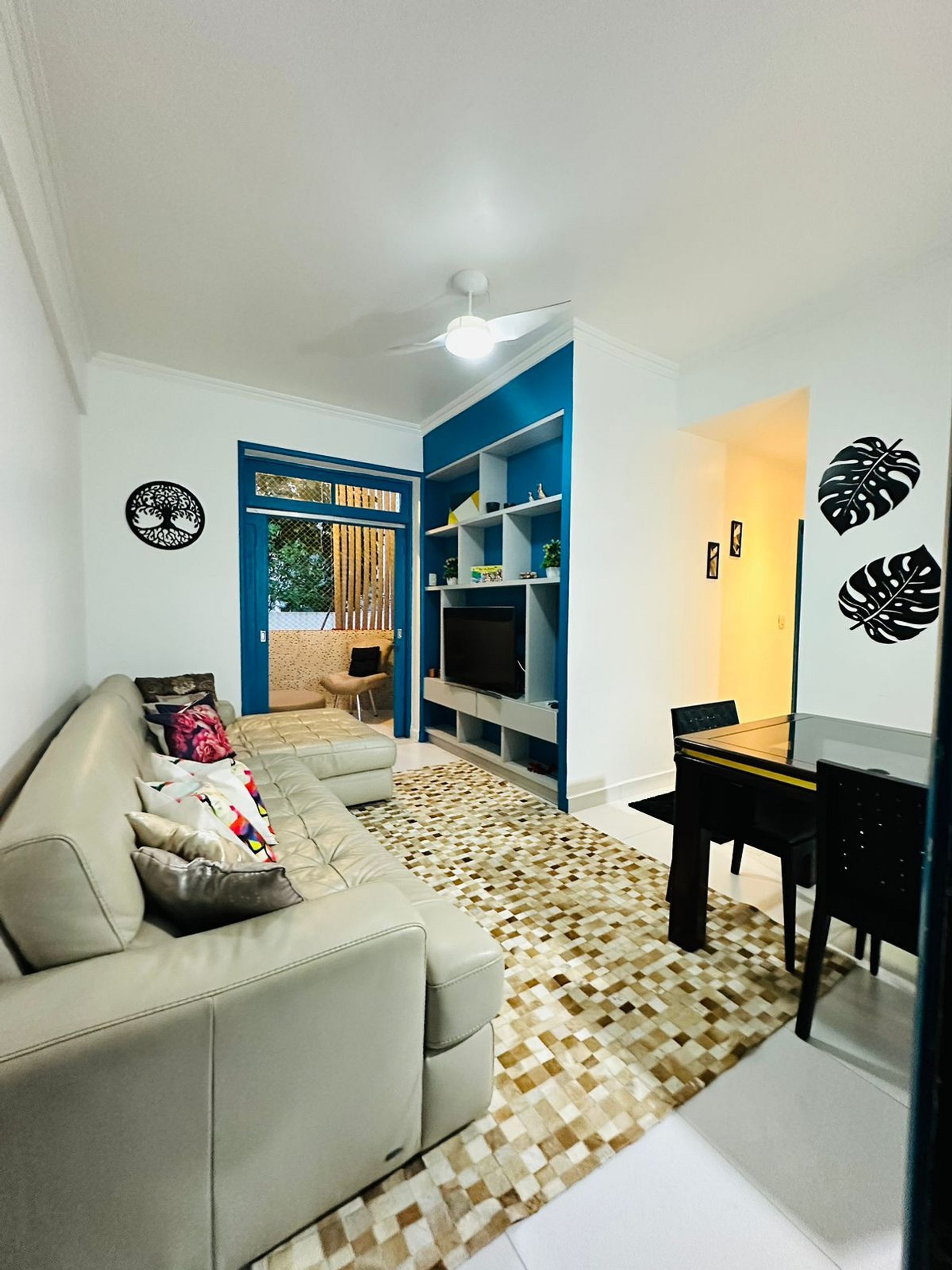 O apartamento é composto por 3 quartos, sala, cozinha completa, 2 banheiros com chuveiros/blindex, área de serviço com lavanderia e varanda.