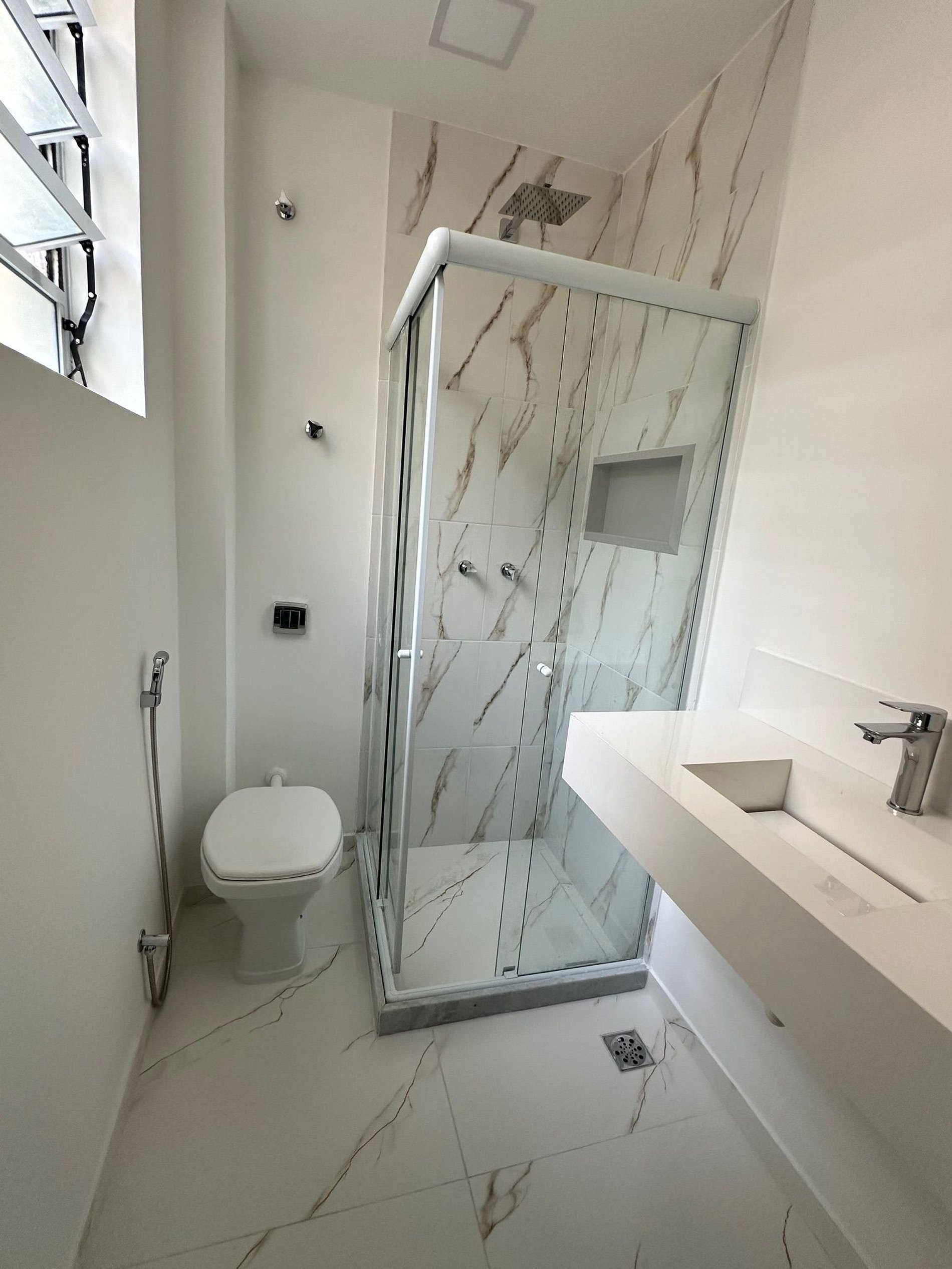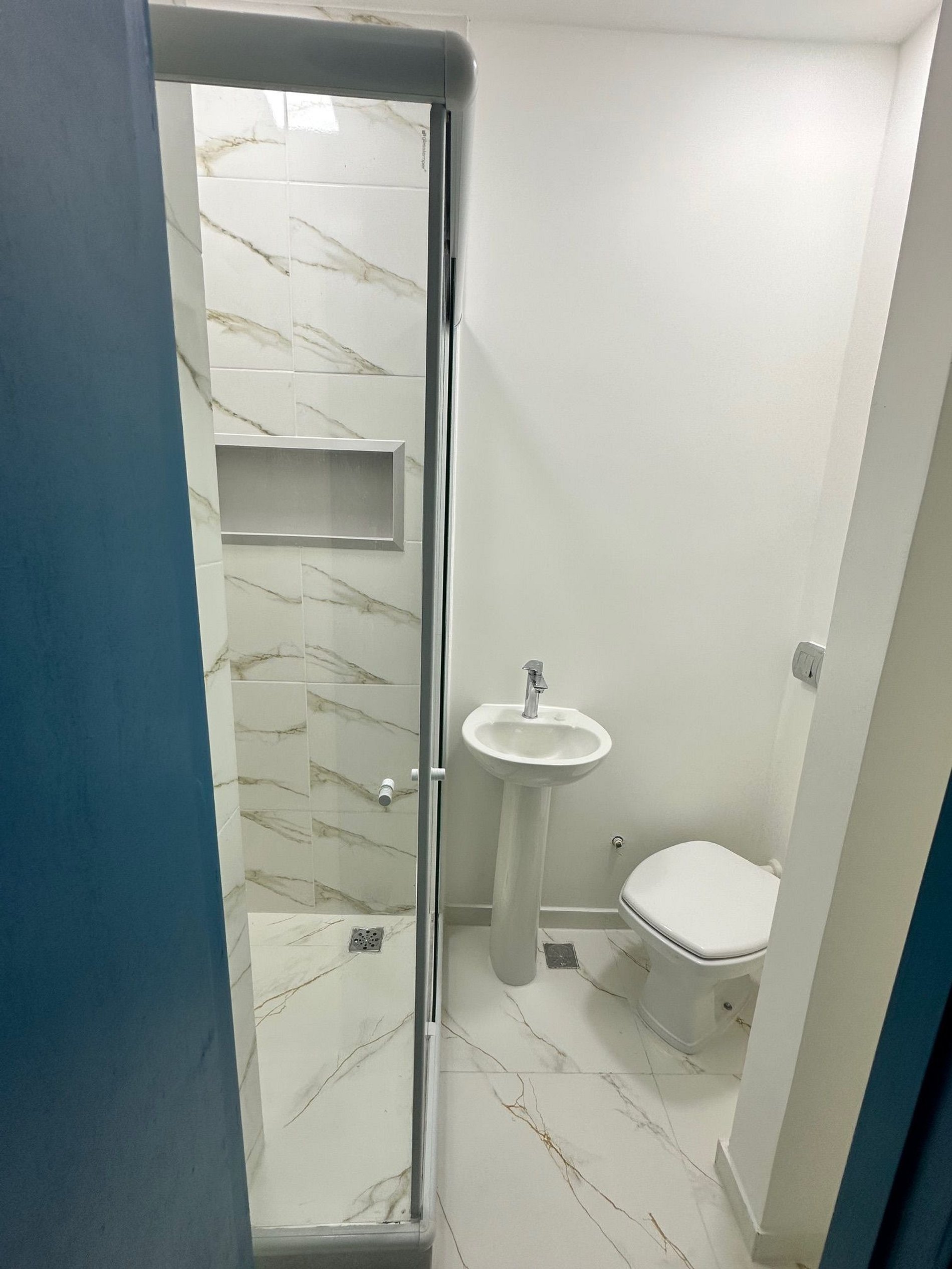 Oferecemos mais um banheiro completo com chuveiro, box blinde, recém reformado e que atende aos quartos.