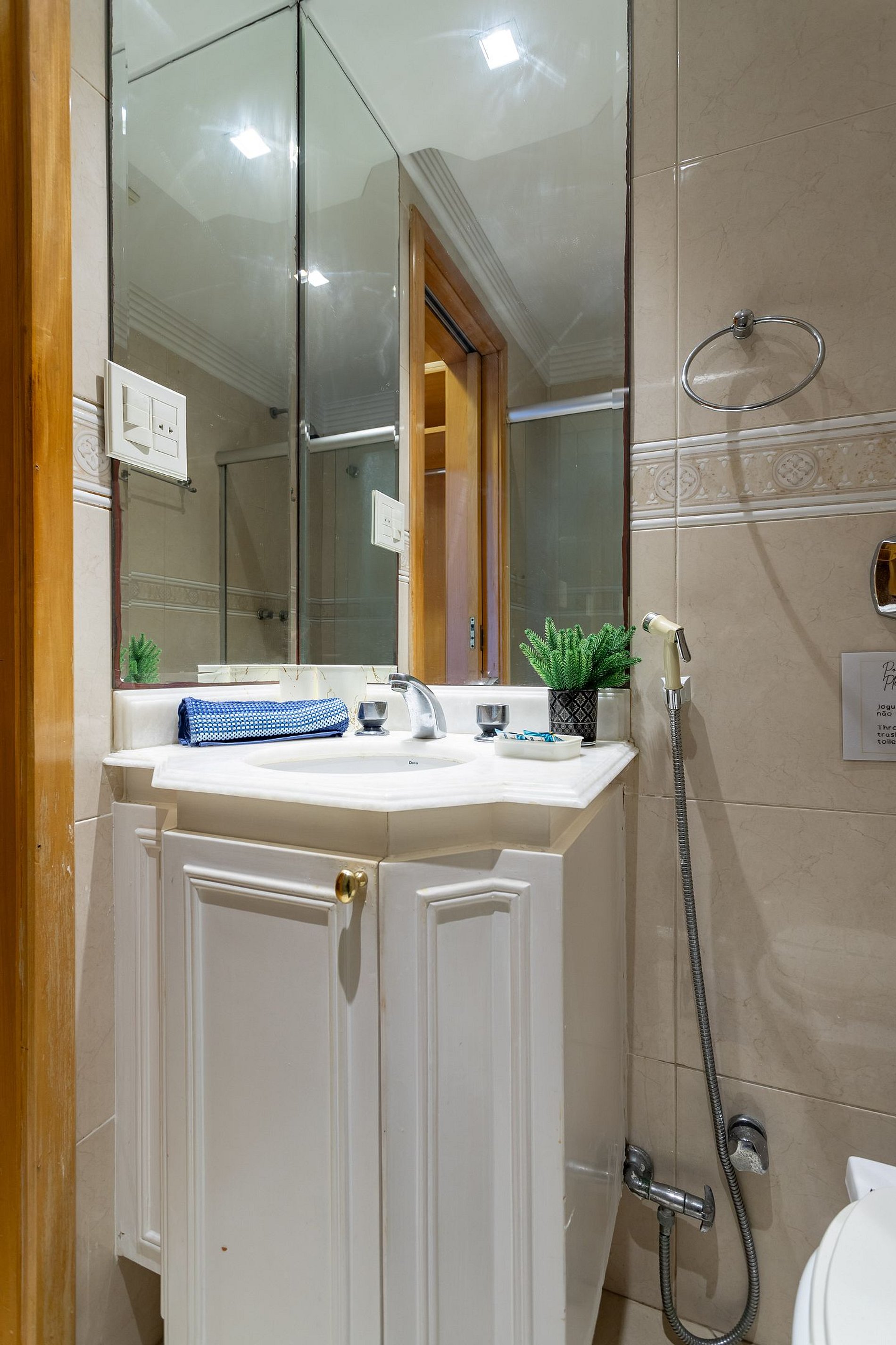 Fornecemos um (1) rolo de papel higiênico e um sabonete (1) por banheiro, não fazemos reposição;