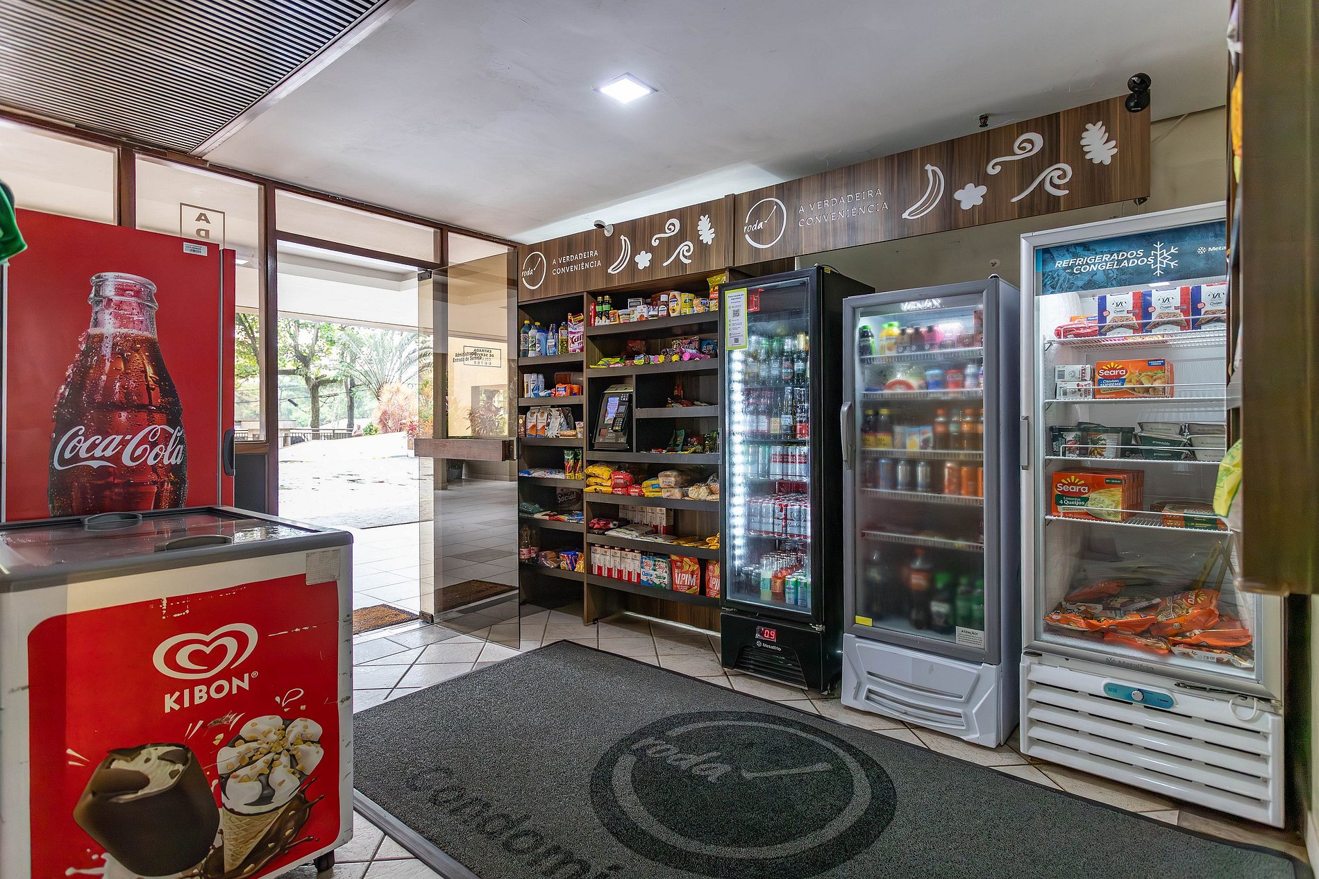Mercado e mini shopping com diversas lojas, cafeterias, restaurante, pizzaria, em frente ao Prédio.