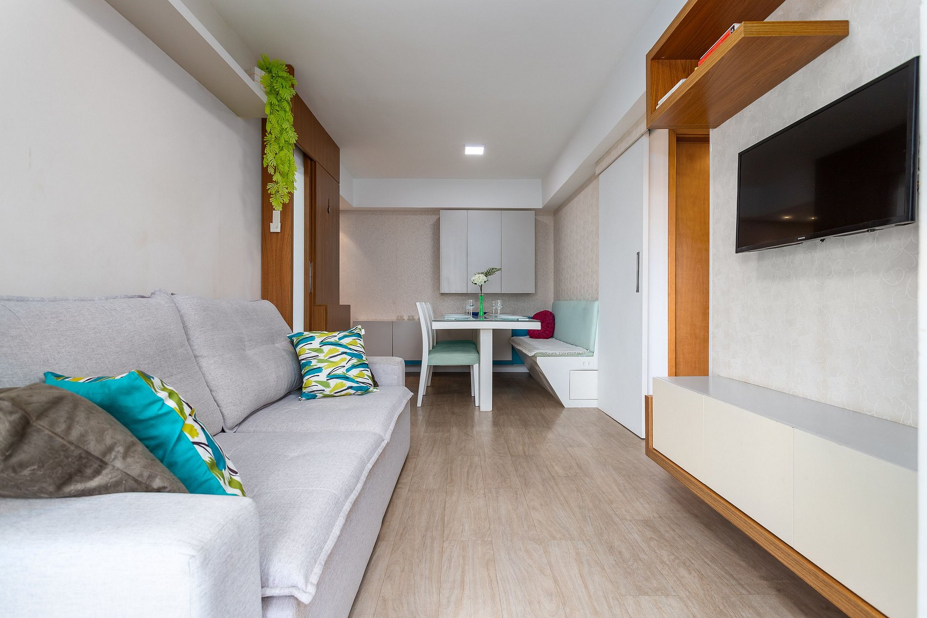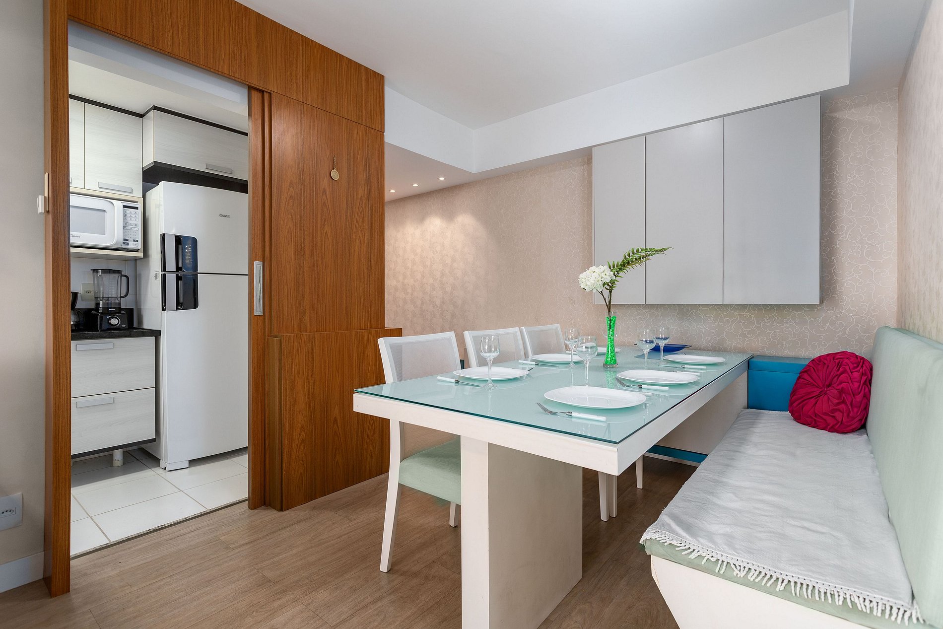 Sala ampla com sofá retrátil, virando uma cama, smart TV com canais abertos, Netflix (traga a sua senha), mesa de jantar para 4 pessoas, acesso a Wi-fi.