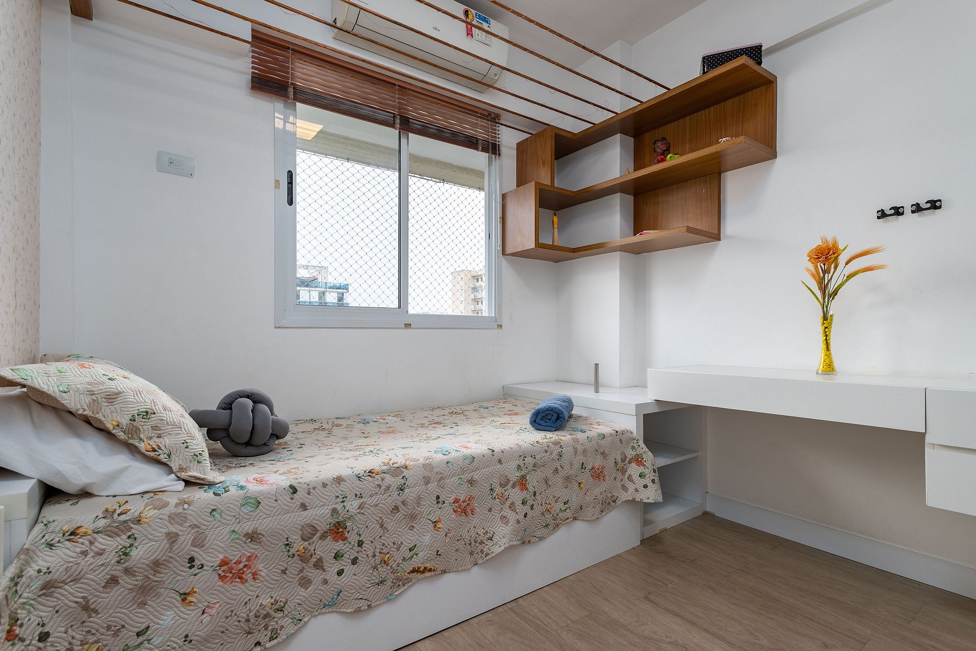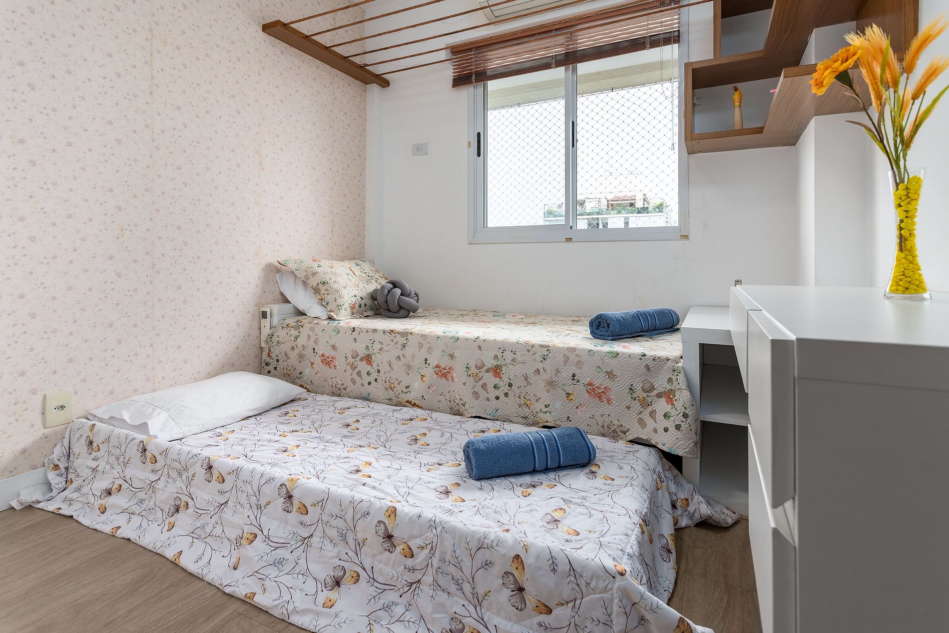 Segundo quarto com bi cama solteiro, black out, armário e ar condicionado.