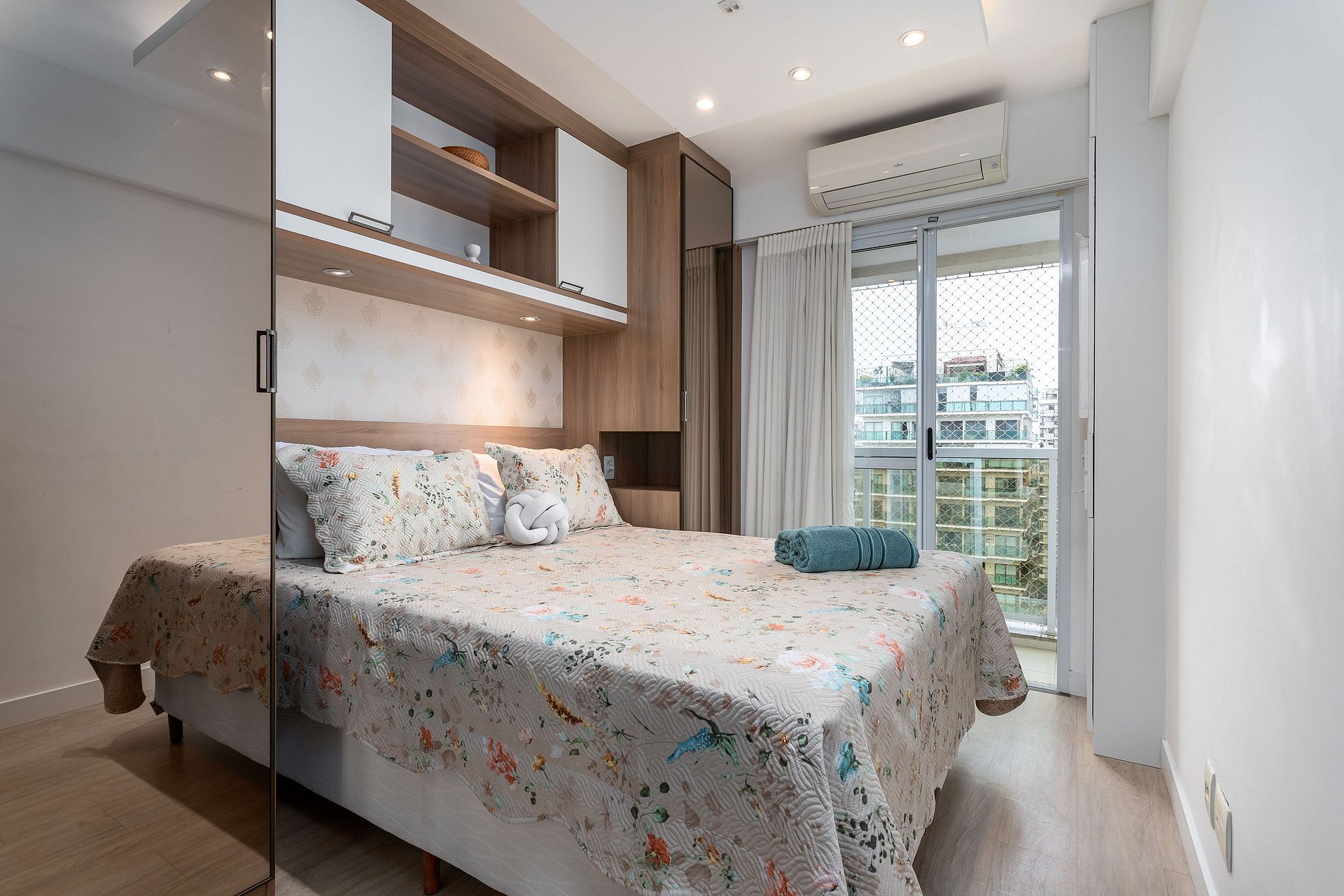 Composto por 1 suíte com cama casal padrão, armário, black out e ar condicionado.