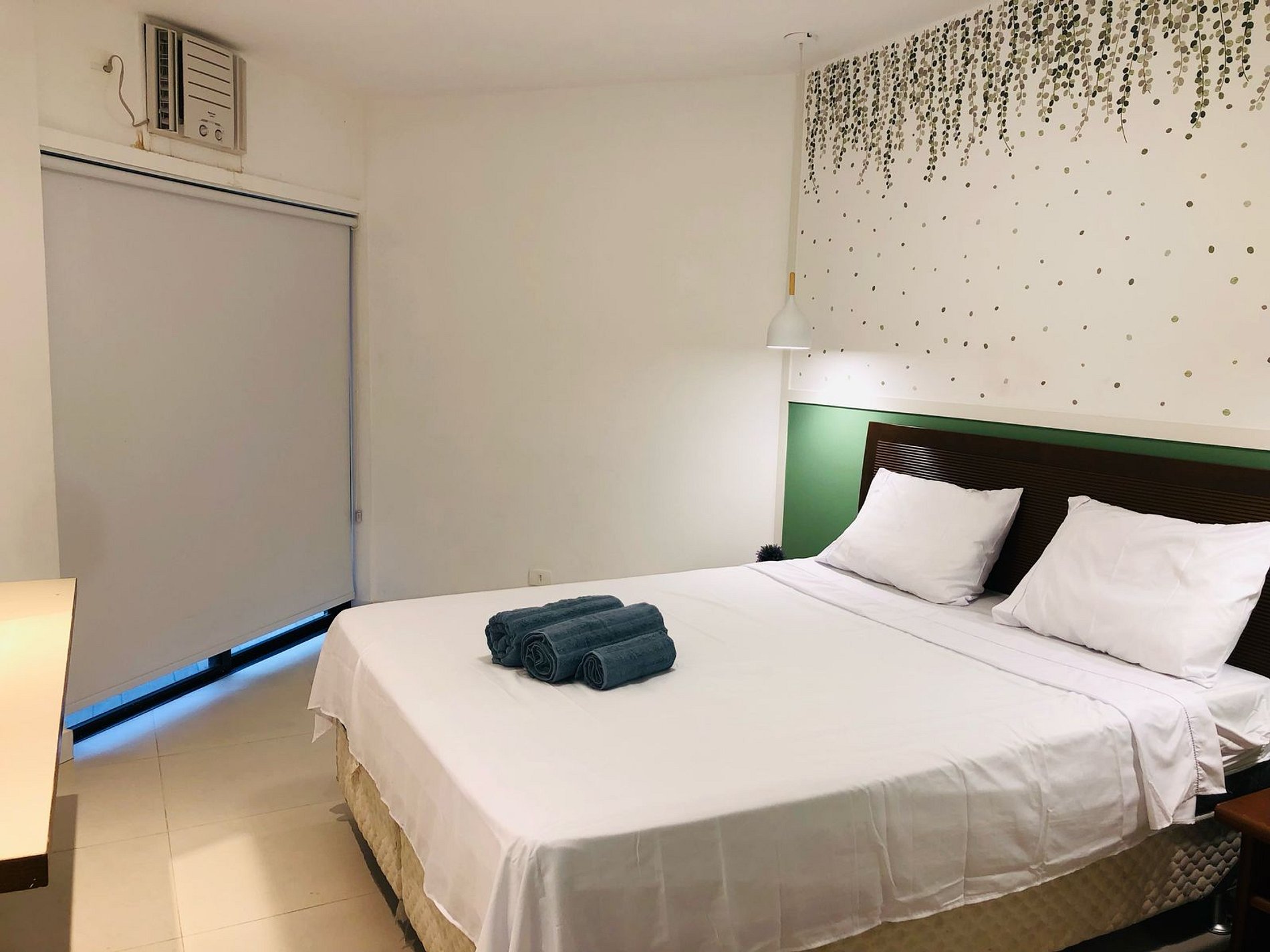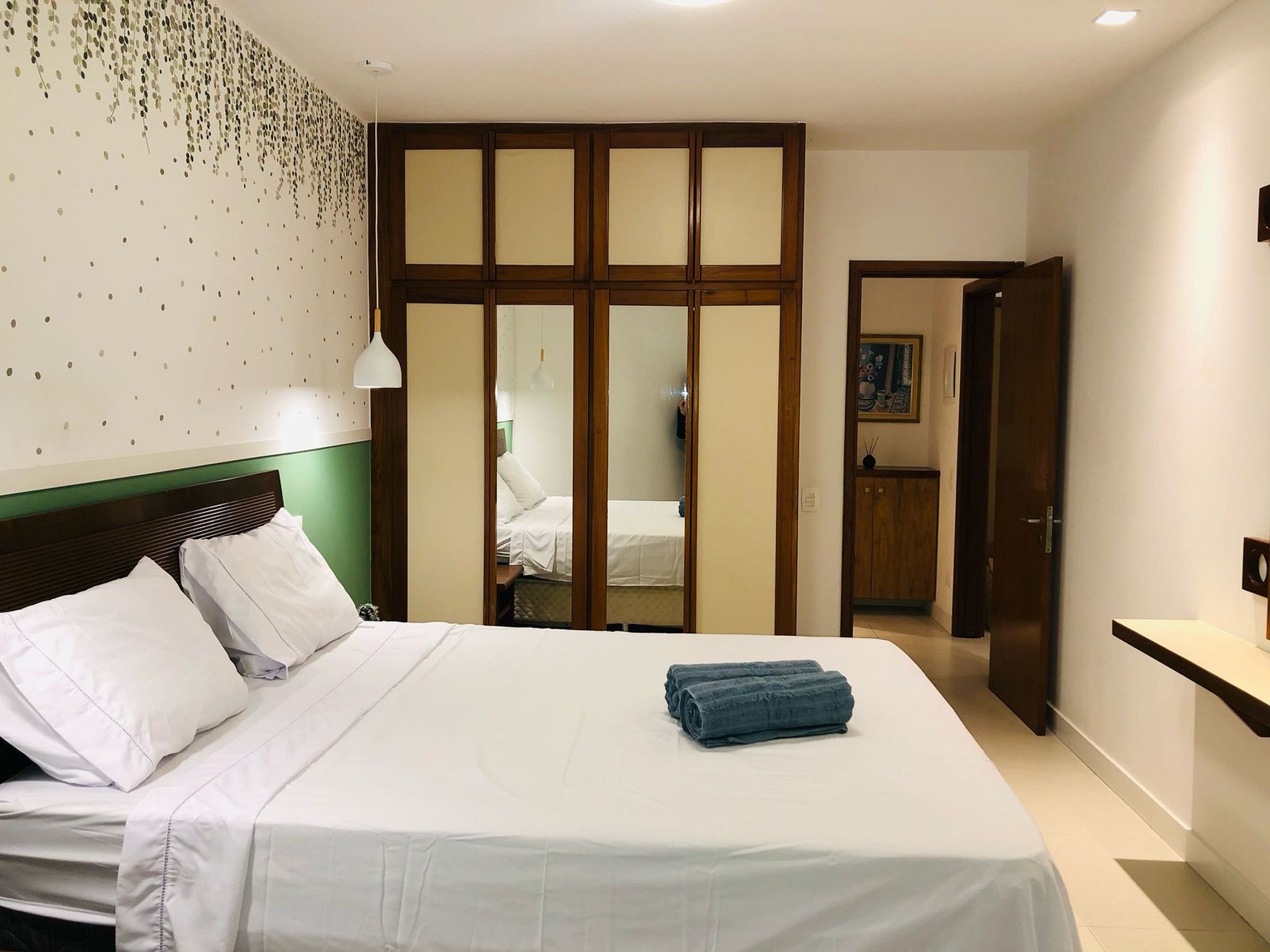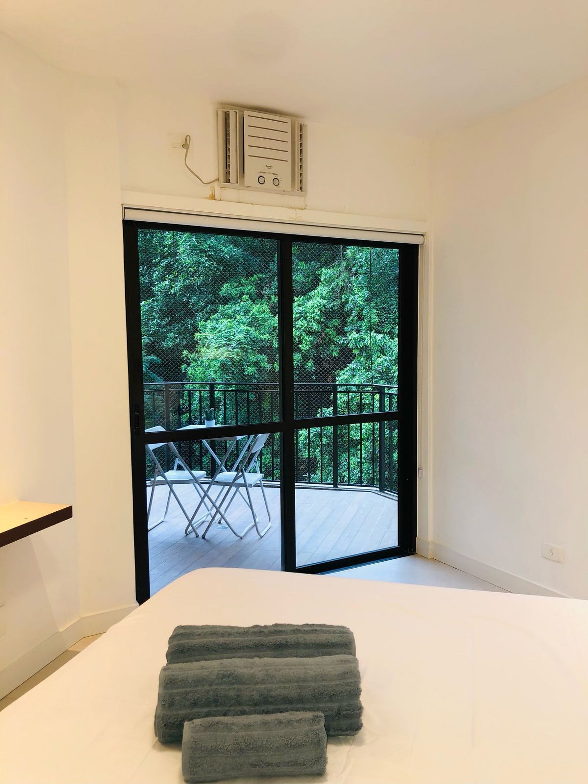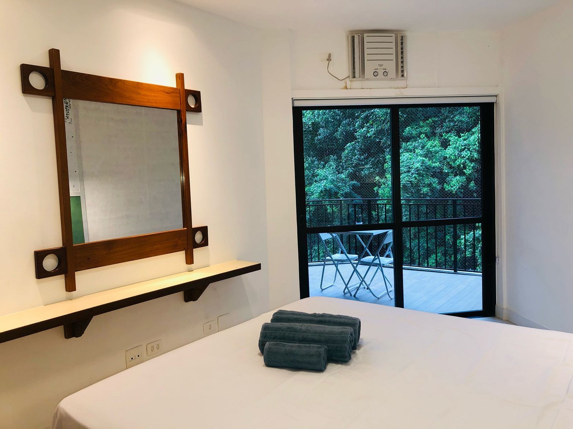- Quarto com cama de casal confortável, armário, ar condicionado.
