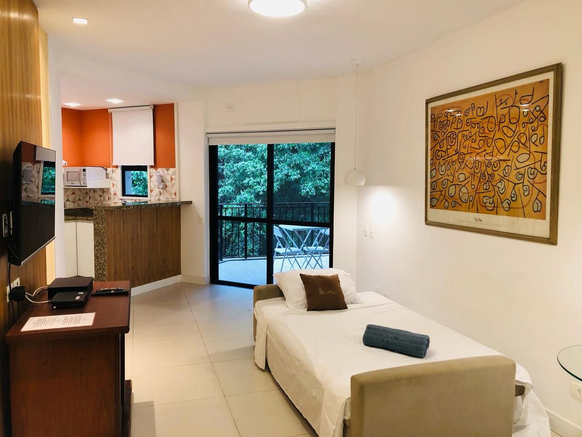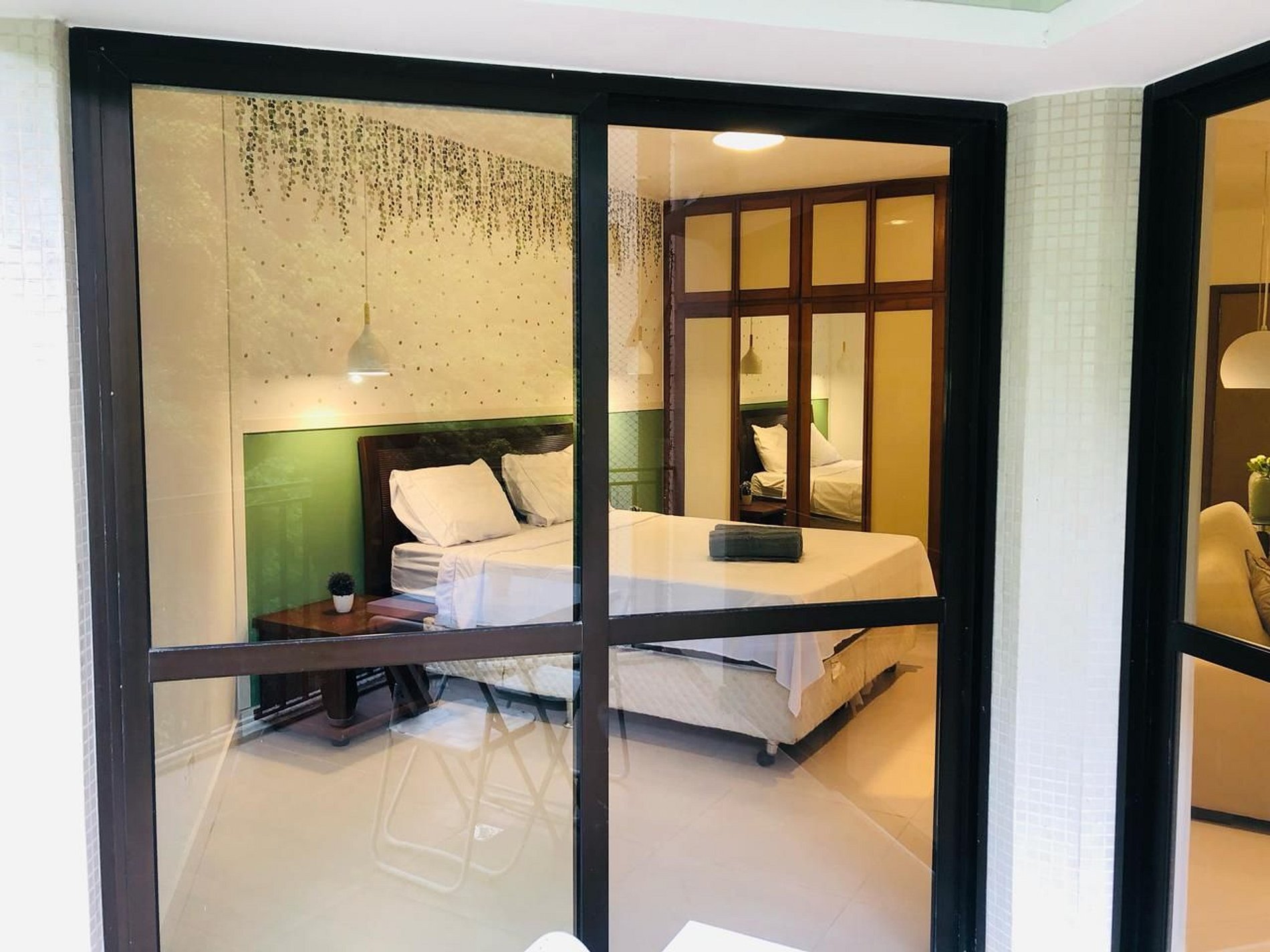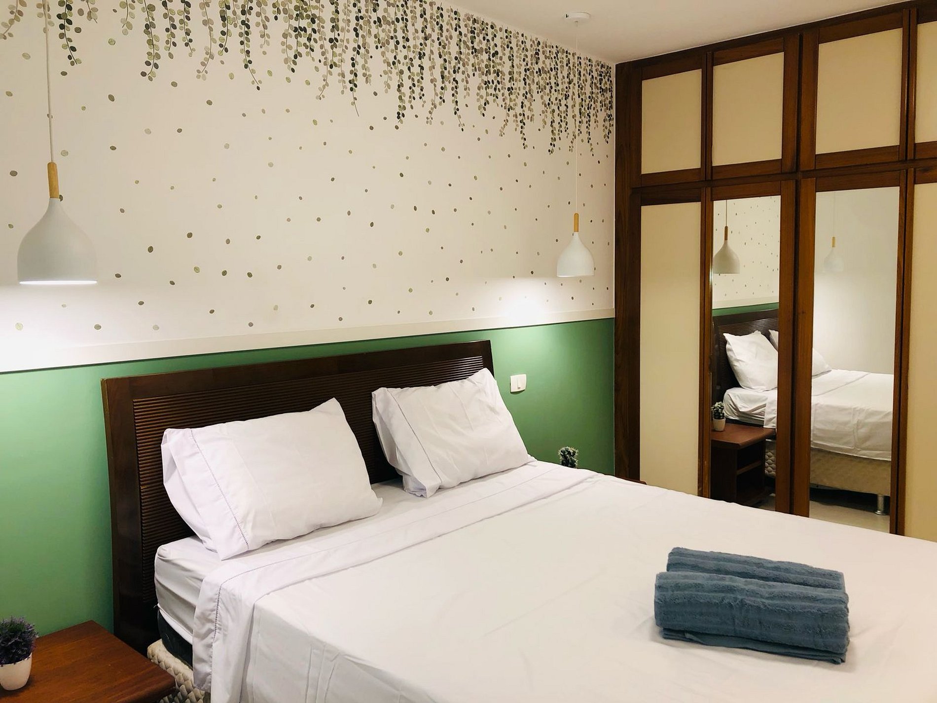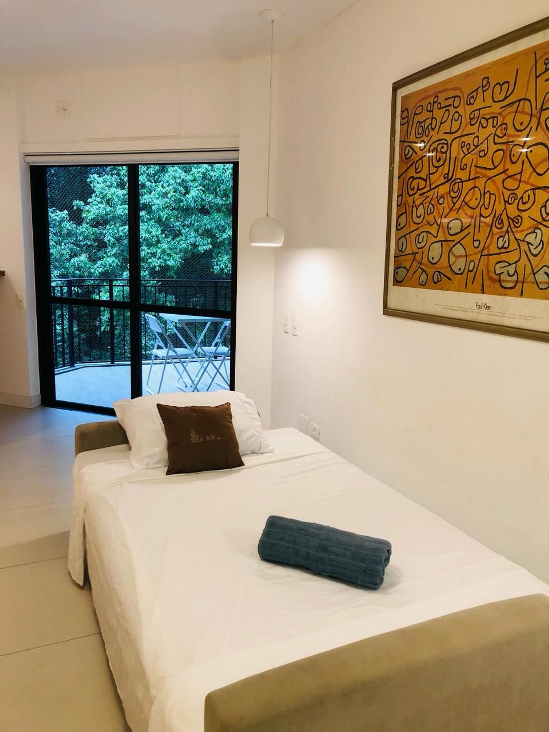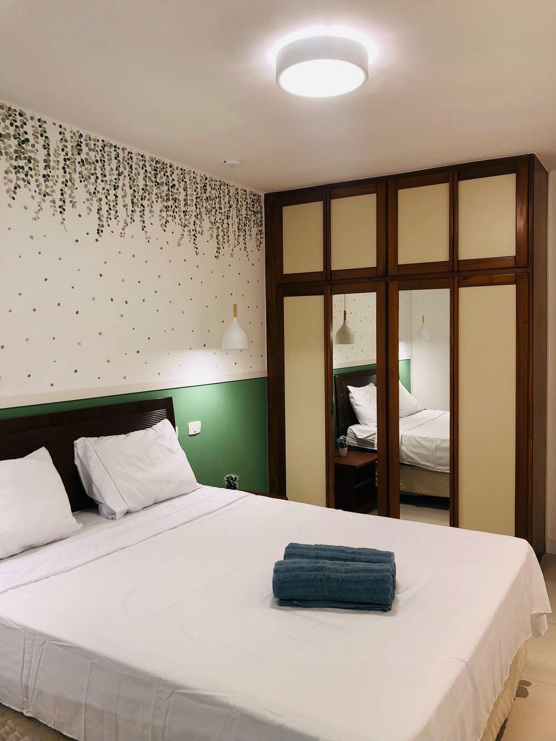 - Quarto com cama de casal confortável, armário, ar condicionado.