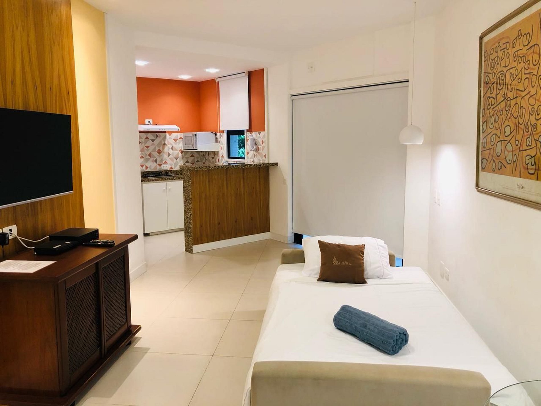 - Sala com sofá cama para uma pessoa, básico e simples, mesa de jantar, TV SMART, traga a sua senha para utilizar os streams, como NETFLIX, GLOBOPLAY. Não oferecemos canais a cabo.