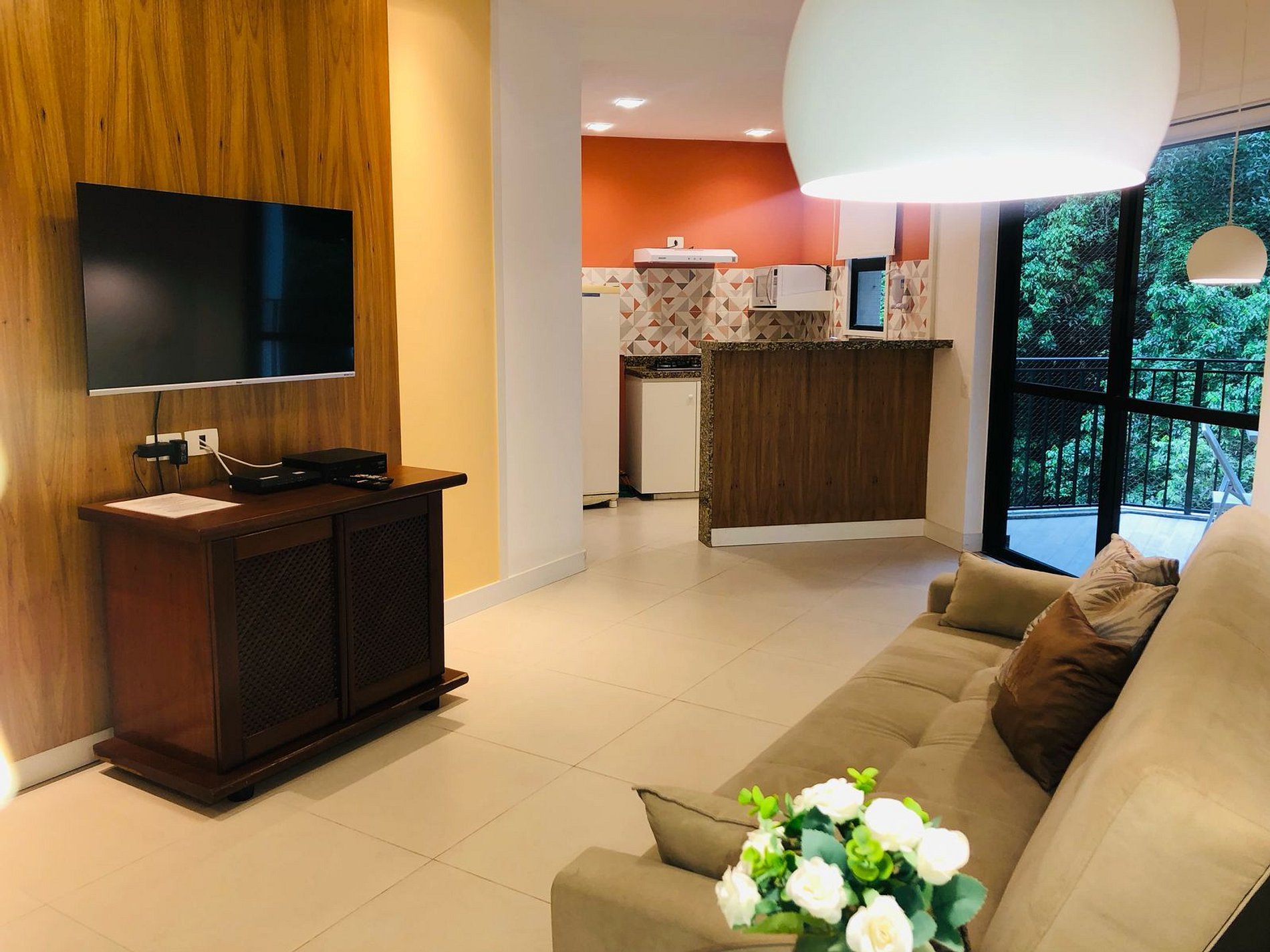 Apartamento de fundos, com vista livre pro verde, fica no sexto andar, silencioso, tranquilo e arejado, perfeito para você descansar.