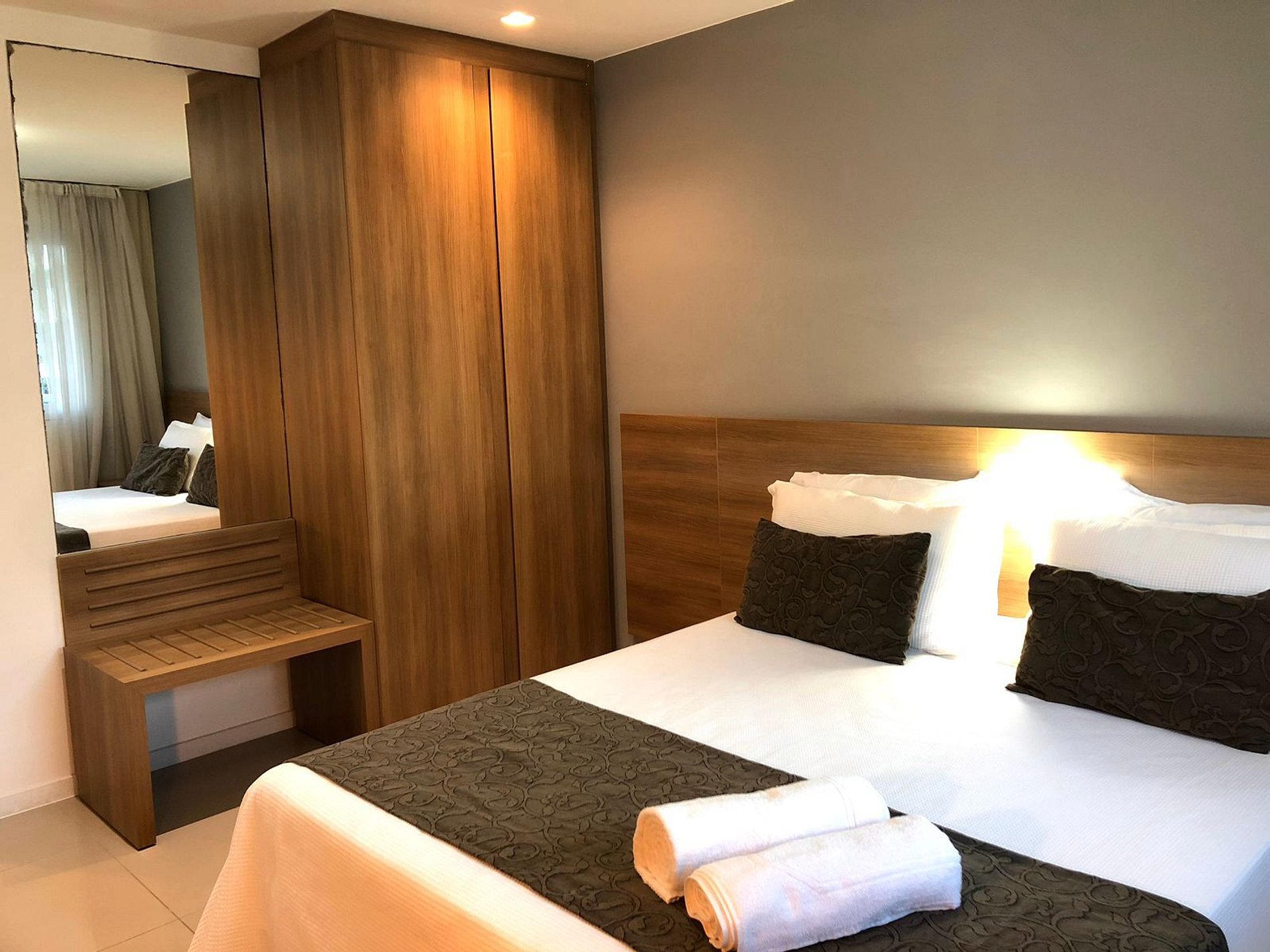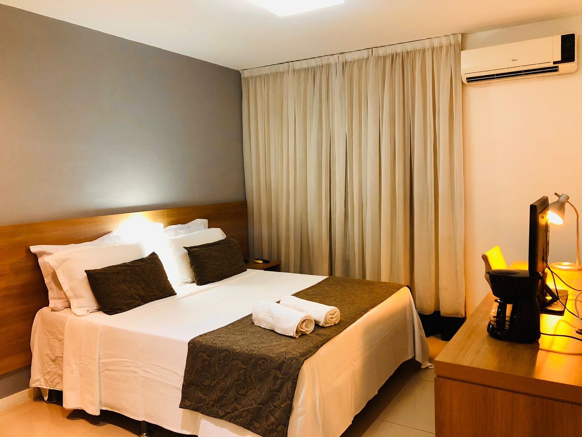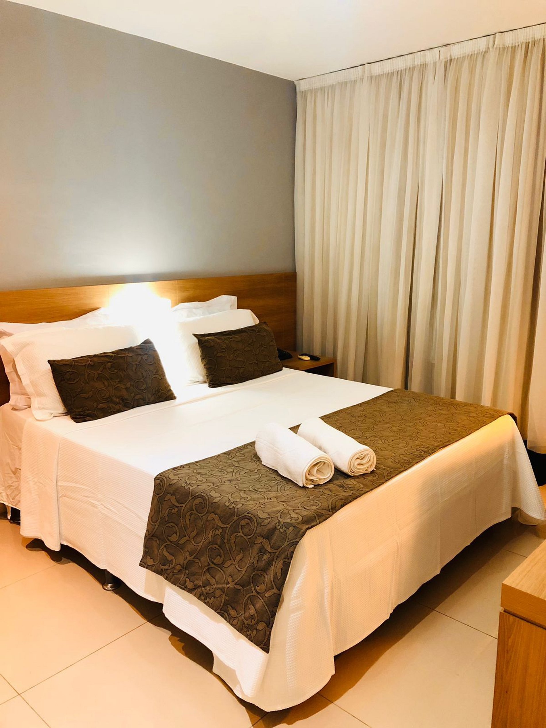 Cortinas com black out proporcionando uma noite tranquila.