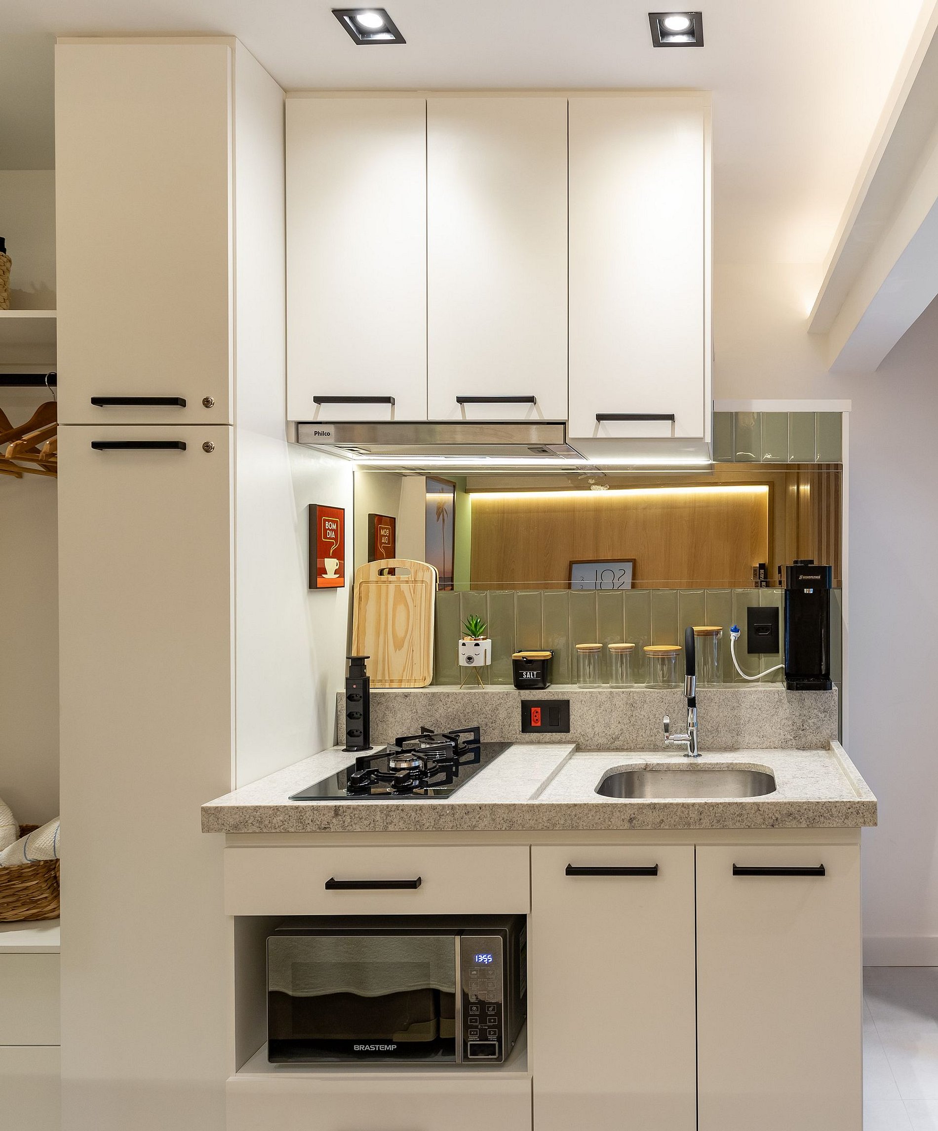 16m² de Conforto: Apesar do tamanho compacto, o espaço foi otimizado para garantir o máximo de conforto, conveniência, praticidade, funcionalidade. Ele é completo e possui tudo que você possa imaginar e precisar para passar dias maravilhosos no Rio de Janeiro.