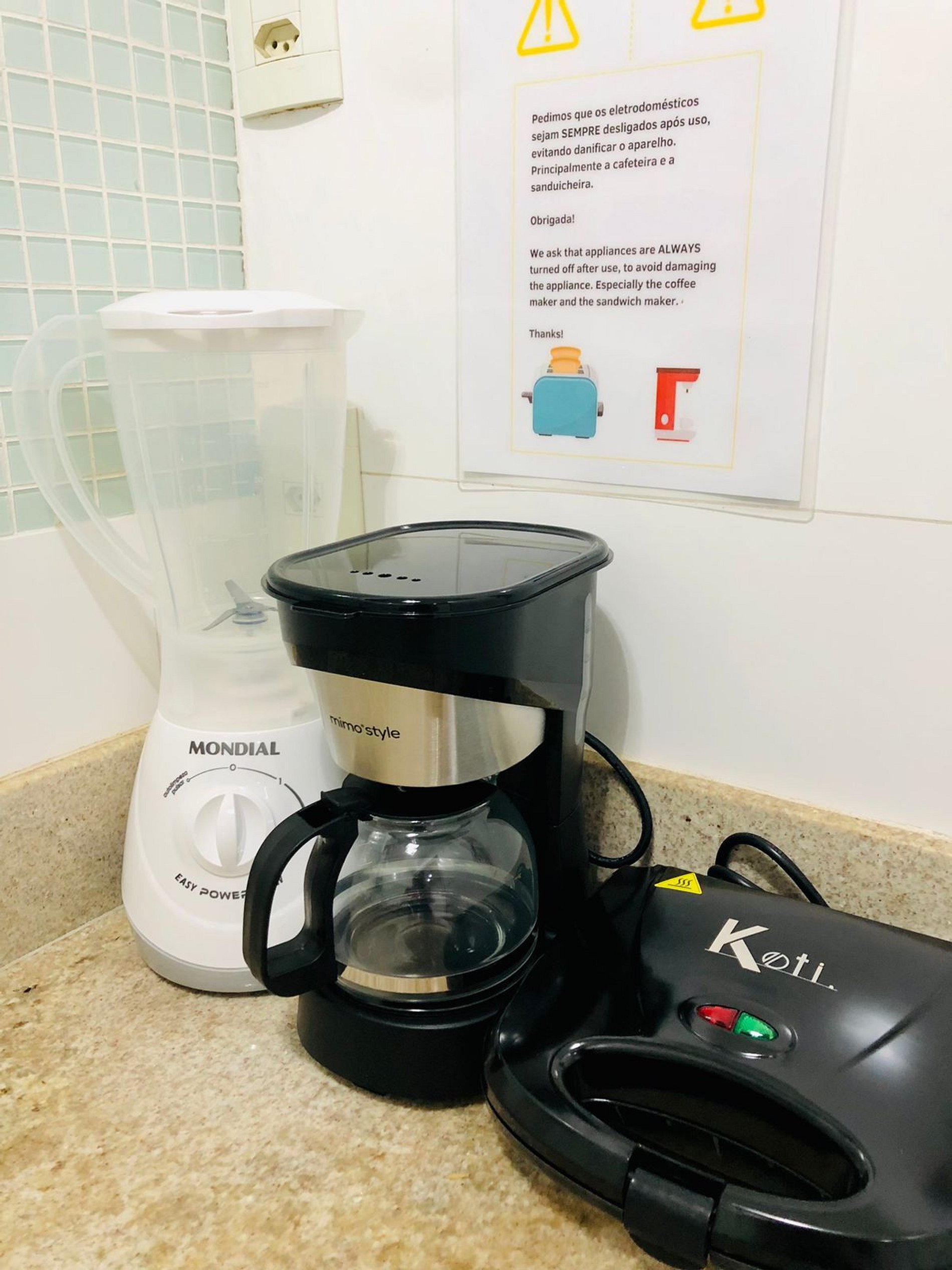 - Desligar o microondas, cafeteira, sanduicheira e ar condicionado sempre que sair do apartamento.